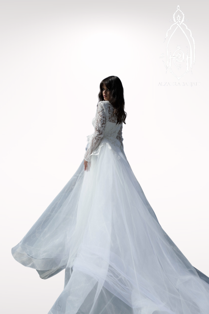 يُعتبر فستان عروسة جبير مطرز من أرقى الخيارات التي تعكس الفخامة والأناقة في يوم الزفاف. يتميز هذا الفستان بتصميمه الراقي المصنوع من قماش الجبير الفاخر، مع تطريزات دقيقة تضيف لمسة من الرقي والجمال.