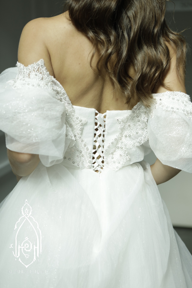فستان عروسة أورغانزا وجبير مطرز يجمع بين الفخامة والأناقة في يوم زفافك، يتميز هذا الفستان بقماش الأورغانزا الفاخر وجبير مطرز يضيف لمسة من الجمال والترف.