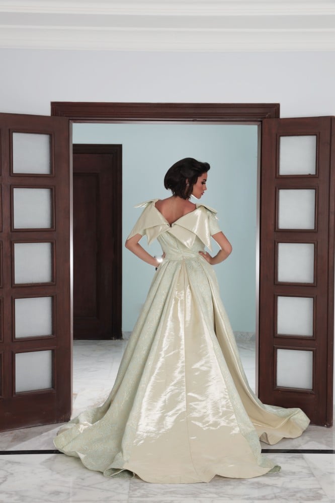 والجزء السفلي كلوش بكسرات ذهبية فاخرة