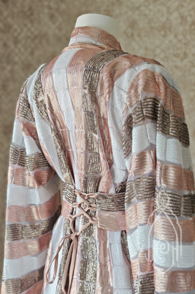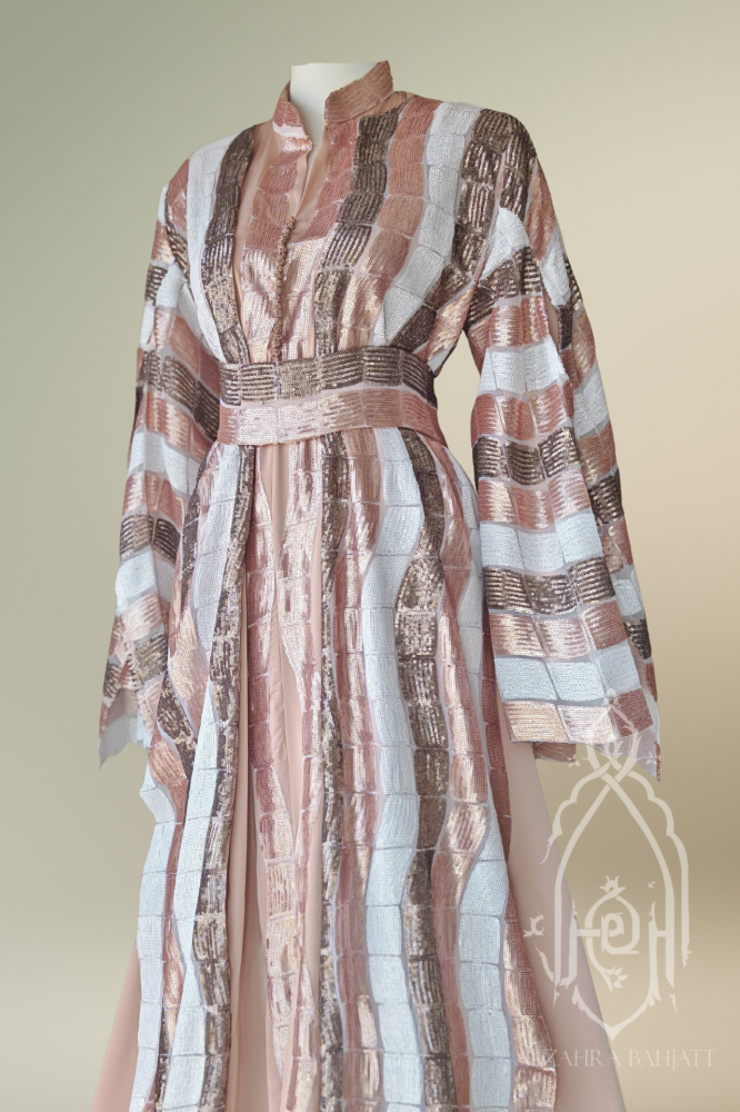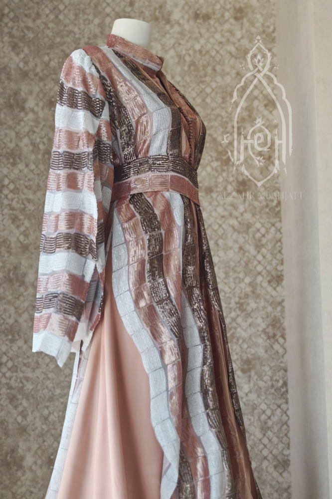 قطعة مثالية للمناسبات الخاصة تعبّر عن الذوق الرفيع والأنوثة الحالمة بأسلوب الزهراء بهجت
