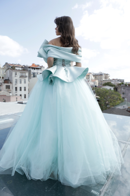 فستان سهرة منفوش تفني فيونكة جاكار وتل هو اختيار رائع للمناسبات الخاصة التي تتطلب إطلالة مميزة ومبهرجة يتميز الفستان بتصميم منفوش يضيف لمسة من الفخامة والحجم، مع تفاصيل التفني الأنيقة التي تمنحك مظهراً ساحراً.